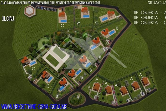 Ulcinj felett egy szőlőültetvény és egy szőlőültetvény (bortermelés) egy kiváló minőségű termékeny helyen. Lehetőség van, hogy építsenek több exkluzív villák körül szőlőültetvények.