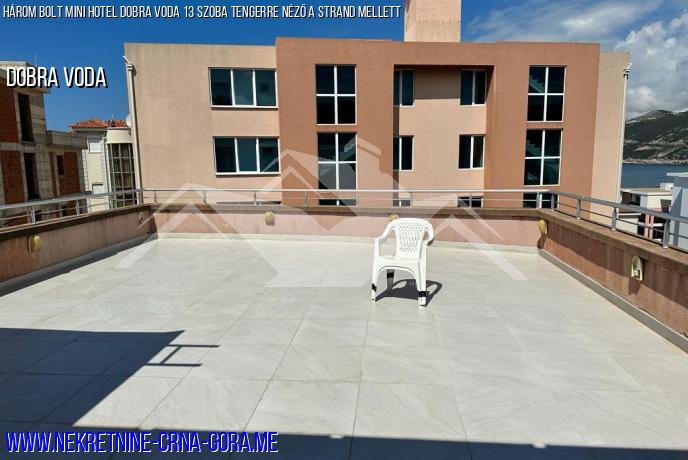 A tetőn egy nagy terasz található, kilátással a tengerre.