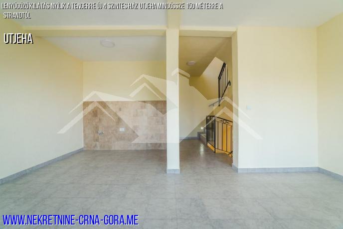 Kínálunk eladásra egy új négyemeletes ház Utjeha tengerre néző, a bár riviéra.