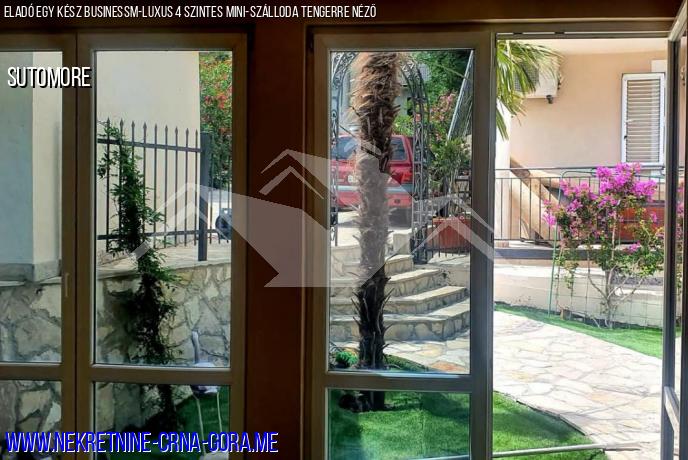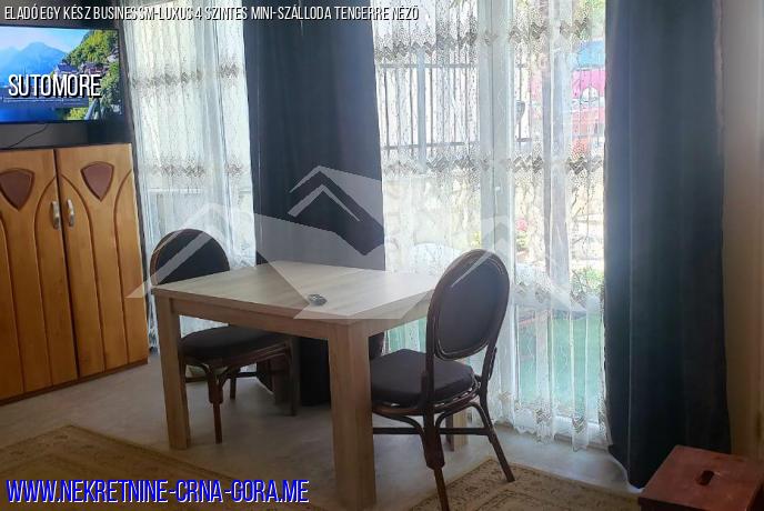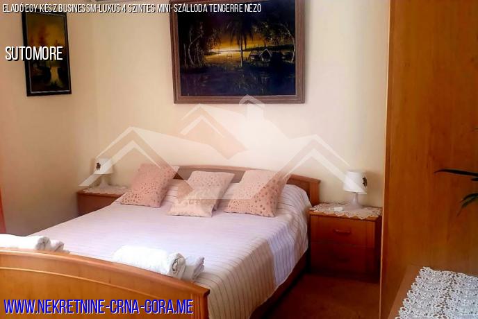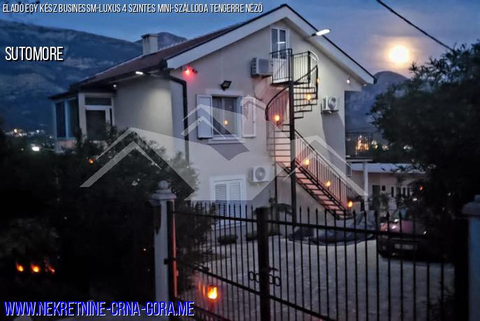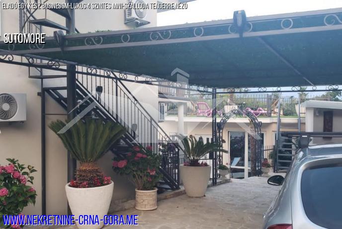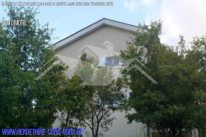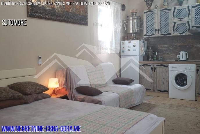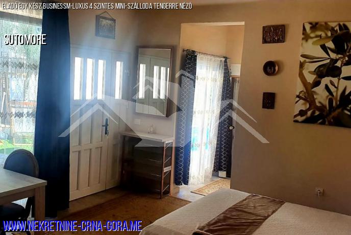 Eladó egy működő mini-szálloda 4 Apartman medencével, szaunával, parkoló 6 autó egy hangulatos, privát hely Sutomore (Zagraj), kilátással a tengerre és a hegyekre, mint egy kész működő vállalkozás. A ház legalizált.