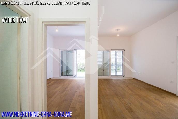 Az épület gyönyörű parkosított udvarral rendelkezik. A központ 2 perc gyalog, a strand 5 perc kényelmes ütemben, PortoMontenegro 10 perc gyalog.