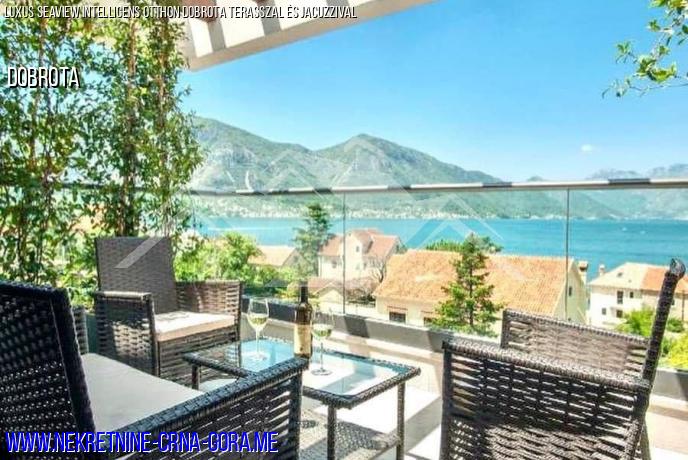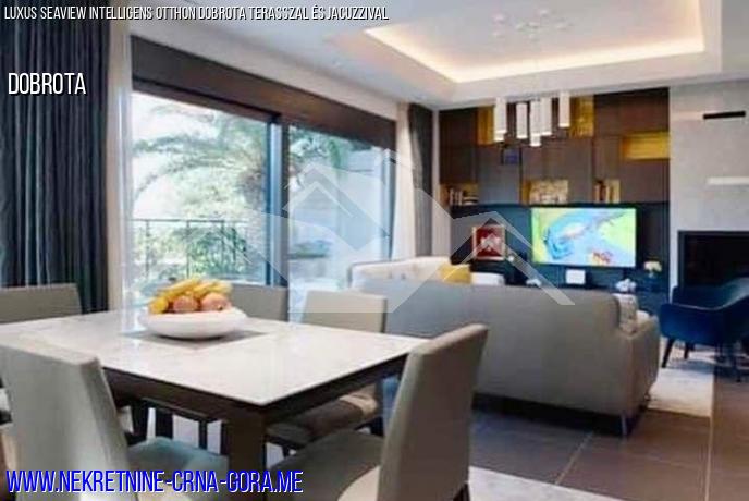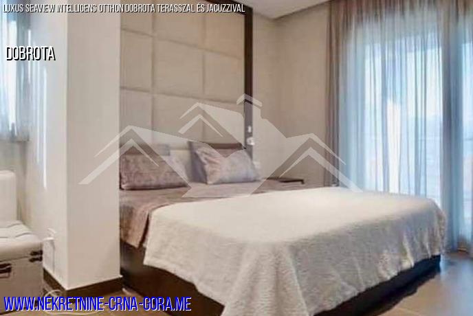 A város Dobrota (Kotor), egy új, teljesen felszerelt ház 210m2 egy privát területe 330m2 eladó.