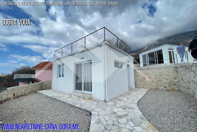 Eladó egy ház Dobra Voda tengerre néző, Montenegró. A komplexum öt újonnan épült, egy hálószobás házból áll, gyönyörű kilátással a tengerre. Teljesen felszereltek és készen állnak a beköltözésre. Minden ház saját tetőterasszal, privát