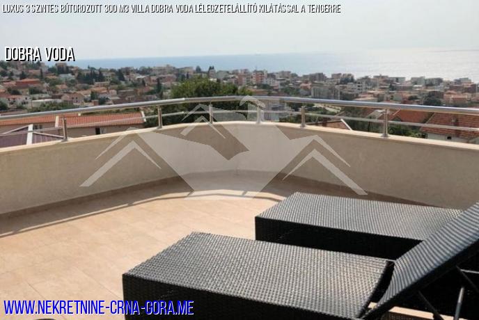 3. emelet: folyosó, hálószoba, nappali konyhával-étkezővel, fürdőszoba, hatalmas terasz, panorámás kilátással a tengerre és Dobra Voda falujára.