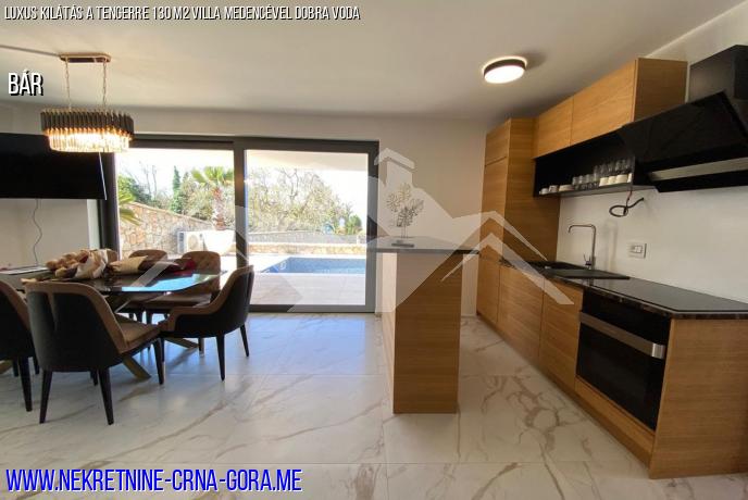 Eladó: ház Dobra Voda, bár gyönyörű kilátással a tengerre. A ház a modern szabványoknak megfelelően épült, és beépített osztott rendszert, intelligens otthoni funkciókat és érintésérzékeny elektromos redőnyöket tartalmaz. Van egy medence a ház előtt. Ház területe: kb. 130 m2, Telek területe: 500 m2. A ház egy konyha, nappali, 3 hálószoba, 2 fürdőszoba, valamint egy tágas terasz tengerre néző.