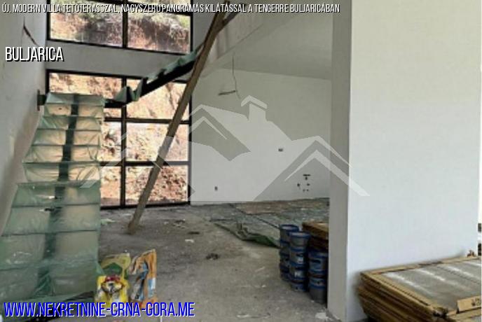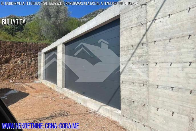 Harmadik emelet: nyitott tetőterasz. Az egész villa légkondicionált, a tetőre pedig napelemek vannak felszerelve. Petrovac mindössze 4 perces autóútra fekszik.