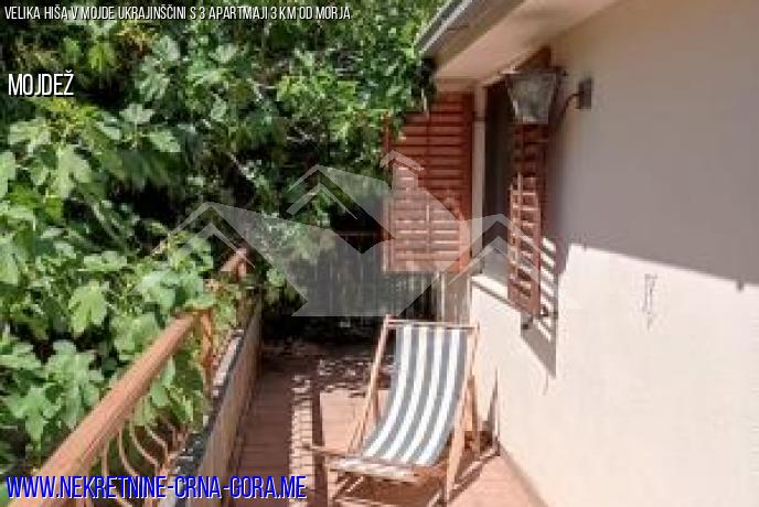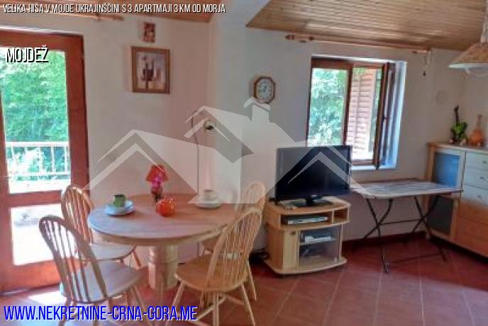 Hiša s tremi apartmaji. Skupno število sob je 8, spalnice 5, kopalnice 3.