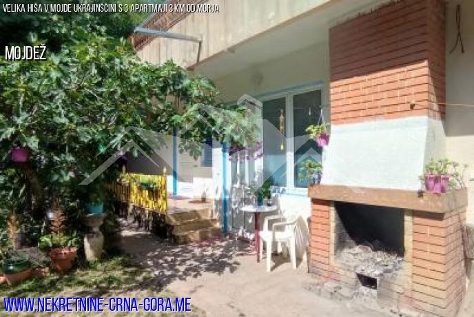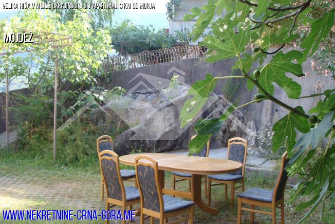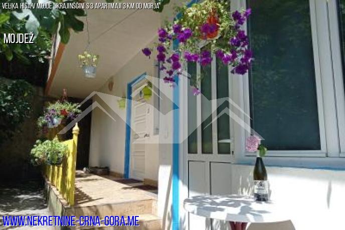 Za prodajo dvonadstropna hiša v Herceg Novi, Moidej z veliko parcelo 830 m2. Skupna površina hiše je 230m2, bivalna površina 200m2.