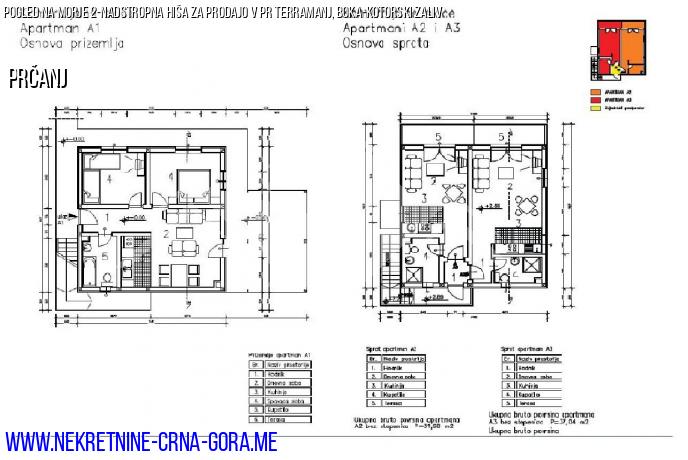 Na prodaj dvonadstropna hiša ob morju v zalivu Prcanj Boko Kotor v črni Gori, sestavljena iz 3 ločenih apartmajev.