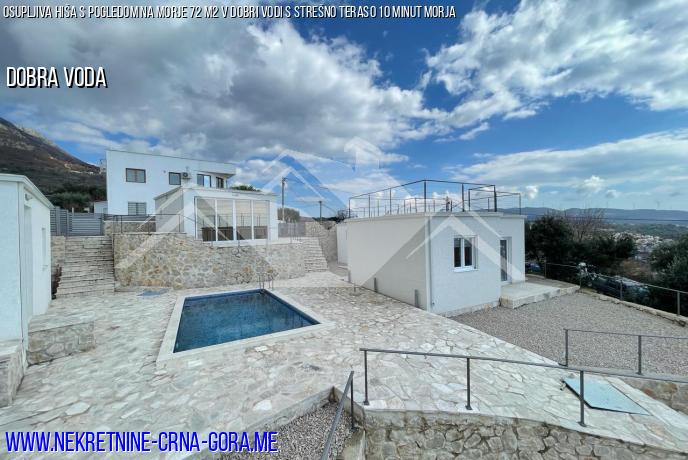 Hiša v Dobra Voda s pogledom na morje, Črna gora je na voljo za prodajo. Kompleks je sestavljen iz petih novozgrajenih enosobnih hiš s čudovitim pogledom na morje. So popolnoma opremljeni in pripravljeni za vselitev. Vse hiše imajo zasebno strešno teraso, zasebno