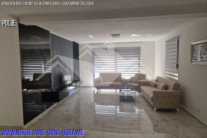 Za prodajo: lepa, nova hiša z dvoriščem v mirnem predelu Bar, Polje. Prostorna hiša ima površino približno 240 m2 in se nahaja na parceli velikosti 350 m2.
