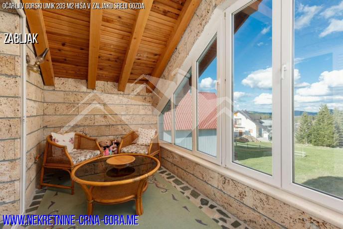 Skupna površina hiše je 203 m2, bivalna površina 184 m2. Iz vsakega nadstropja hiše je pogled na osupljivo lepoto gozda.
