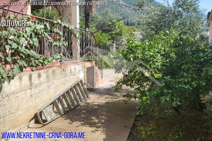Veliko je mladih dreves (limona, breskev, nektarina, oljka, fortunella itd.).) in cvetje, ki raste na zemljišču velikosti 210 m2. Površina hiše je 77 m2 (47 m2 + 30 m2 terase).