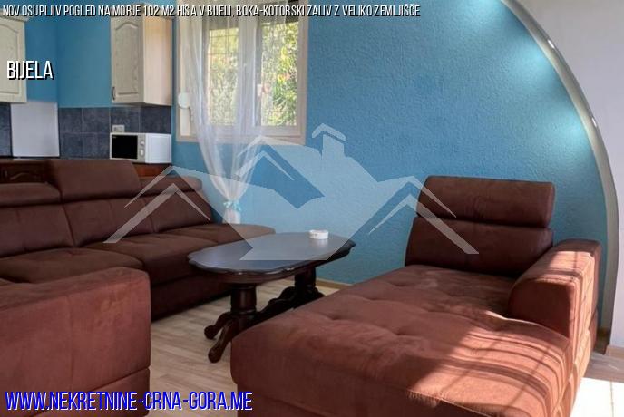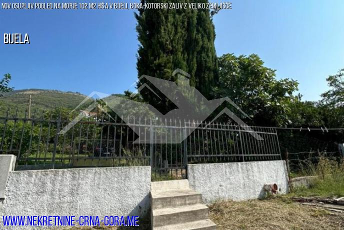 Na obali Kotorskega zaliva je naprodaj hiša velikosti 102 m2 v mestu Bijela s pogledom na morje in na drugi strani gore Lovcen z mavzolejem Negos. hiša ima veliko ograjeno parcelo več kot 500 m2.
