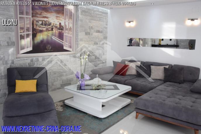 Ekskluzivni butični hotel s 5 zvezdicami v Ulcinju s čudovitim razgledom na staro mestno jedro v Ulcinju v črni Gori naprodaj. Skupaj šest nadstropij in ogromna terasa za sončenje.