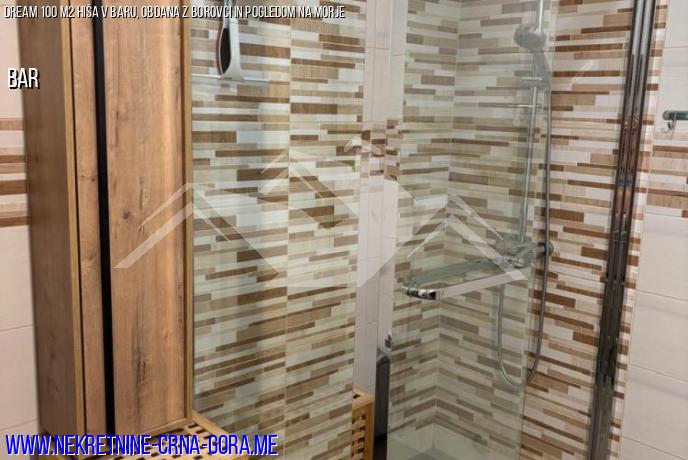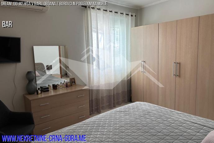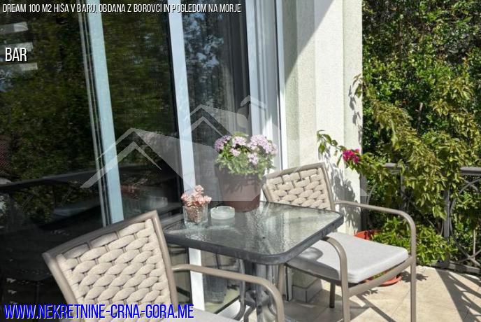 Udobna hiša, ki se nahaja na čudoviti lokaciji, obdana z borovci in cipresami, je naprodaj v baru. Morje in vsa potrebna infrastruktura sta v neposredni bližini. Hiša ponuja vse ugodnosti za udobno življenje. Dvonadstropna hiša s skupno površino 100 m2 se nahaja na parceli 200 m2.