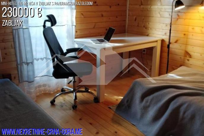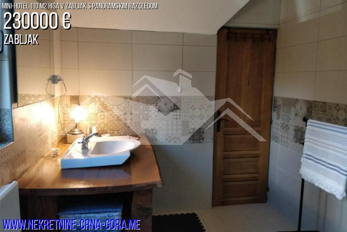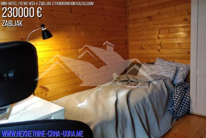 110 m2 (81 m2 stanovanjske hiše je zasnovan za maksimalno udobje na dveh ravneh. Dve spalnici, velik dnevni prostor s tal do stropa panoramska okna, ločeno kuhinjo in dve kopalnici - vse, kar je premišljena do najmanjše podrobnosti. Poseben ponos objekta je Jacuzzi na zgornji ravni z gorskih pogledov in tuš na spodnjem nadstropju. Predstavljajte si: po dnevu na smučišču ali planinskih poti, lahko se sprostite v Jacuzzi, občudovali sončni zahod nad Durmitor. Hiša je popolnoma opremljena in opremljena z vsemi potrebnimi gospodinjskimi aparati, pripravljena za vselitev kadar koli. Visoko kakovost konča, premišljen, postavitev in pravni status objekta, ki bo ne samo hiše, vendar pravi premium gorsko zavetišče.