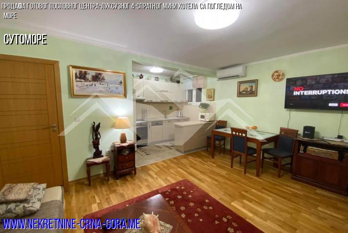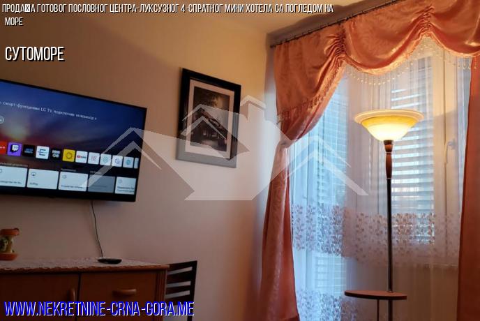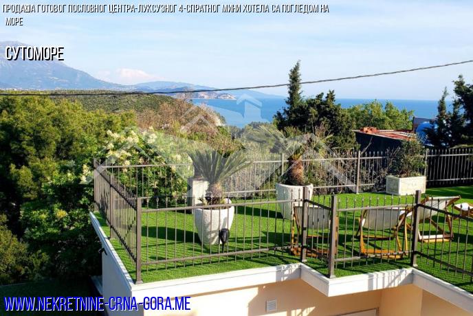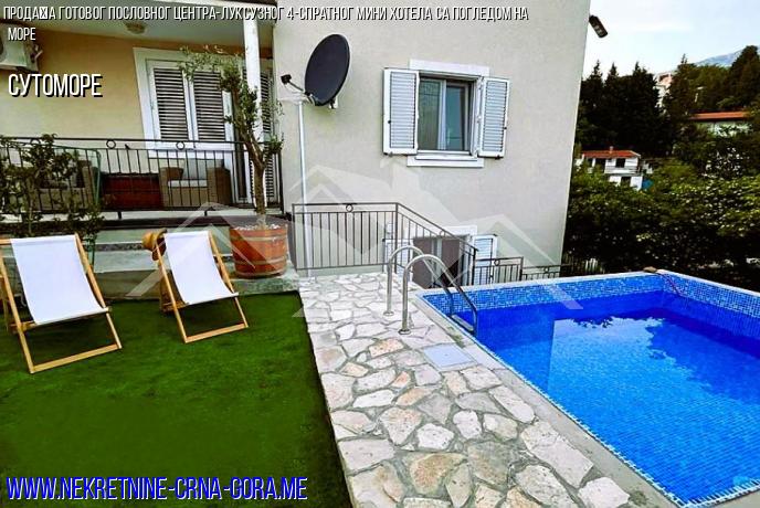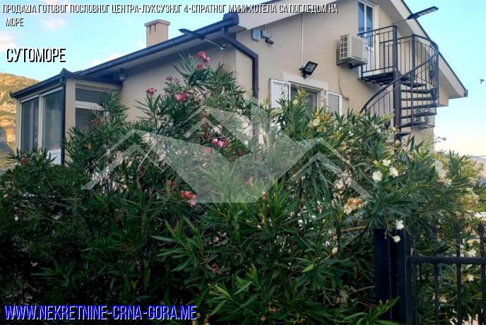 У продаји је делујући мини хотел са 4 апартмана са базеном, сауном, паркингом за 6 аутомобила на удобној, приватној локацији у Сутомореу(Заграј ) са погледом на море и планине као готов посао. Кућа је легализована.
