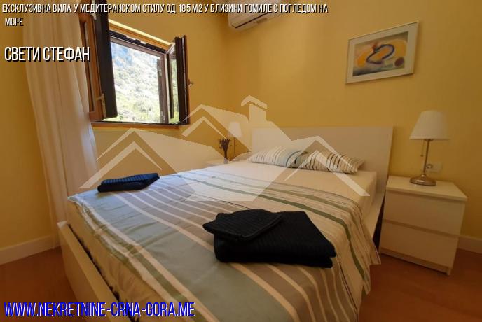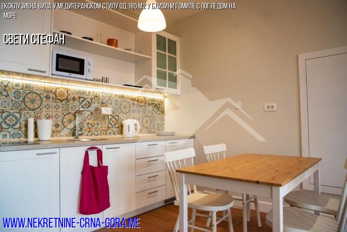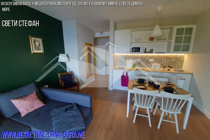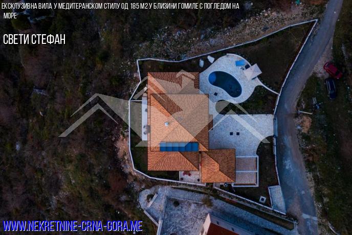 На продају се нуди пространа вила, изграђена у медитеранском стилу и са укусним ентеријером, налази се у селу у округу Близикуче, недалеко од Свети Стефана, на висини од 285 м изнад нивоа мора. Изградња је завршена 2020.године. Вила је пројектована и опремљена за удобан круглогодишњи боравак.
