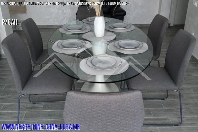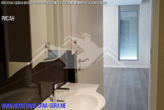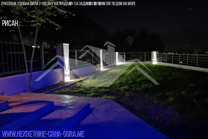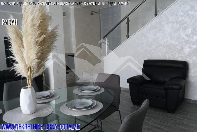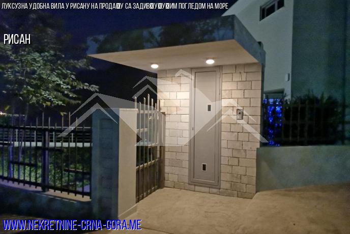 Продаје се луксузна вила са базеном, уређеним тереном и прелепим погледом на Јадранско море и град Рисан. Растојање до мора је 600 м (по ваздуху). Налази се на мирном, пријатном месту и пружа велику удобност за порођај и породични одмор. До виле води нови асфалтовани пут са градским осветљењем (1,4 км од мора).