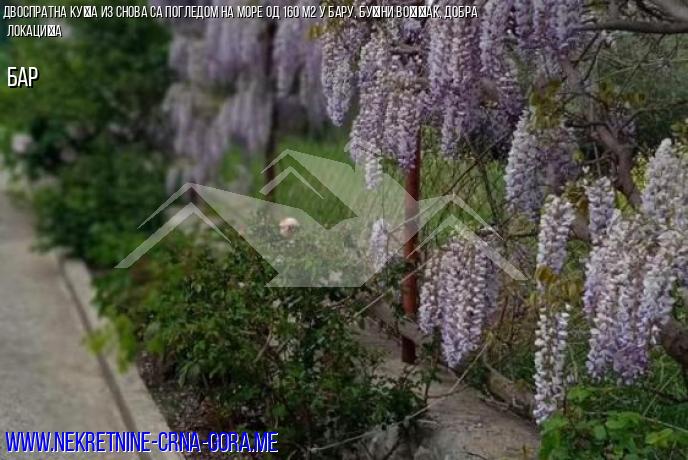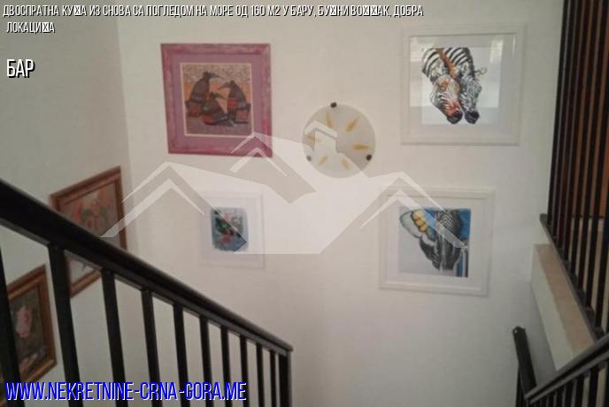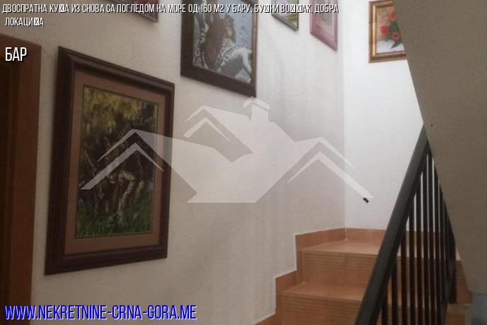 На продају је двоспратна кућа у бару са 3 спаваће собе. Поглед на море, град и планине.