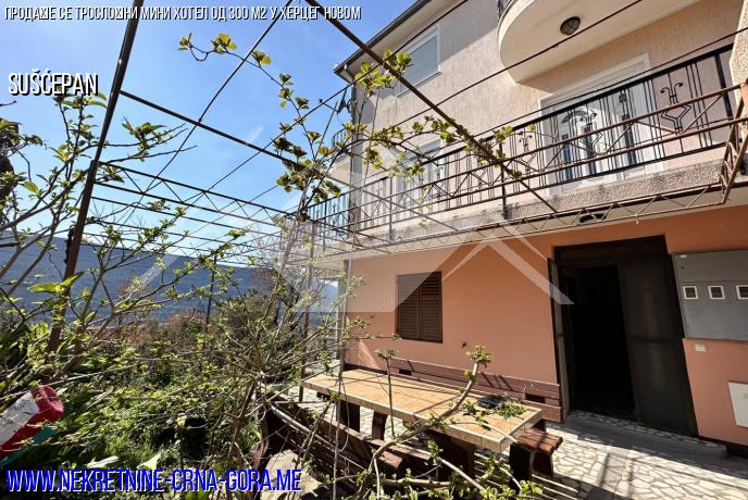 Продаје се кућа од 300 кВ м на 3 спрата у тихом еколошки чистом подручју Sušćepan града Херцег Нови. Участка 415 м2.
