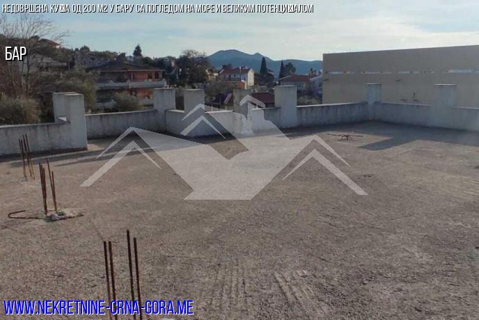 Недовршена двоспратна кућа у бару, површине 200 м2, парцела 450 м2.
