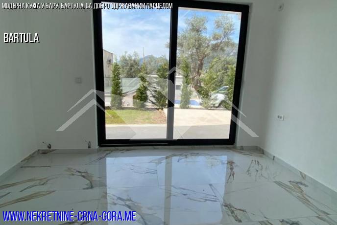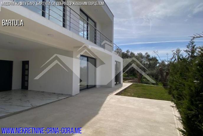 Продаје се модерна кућа од 160 м2 у бару, Бартула. Кућа има 2 спрата, три спаваће собе, дневни боравак и 2 купатила. На површини од 360 м2 расту маслине. Кућа је у завршној фази изградње, што пружа одличну прилику за завршетак ентеријера по вашем укусу.