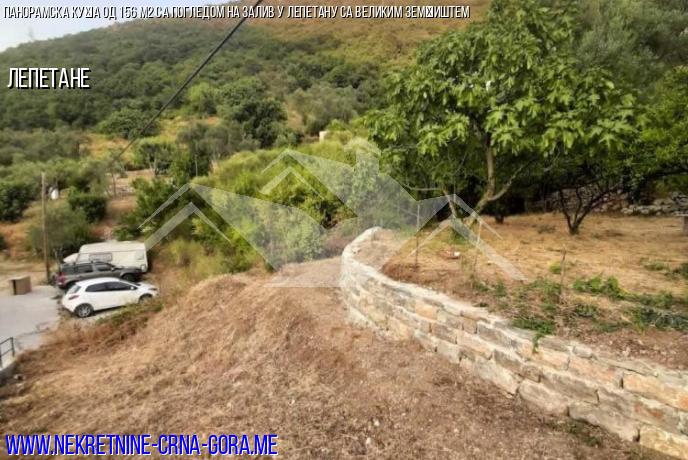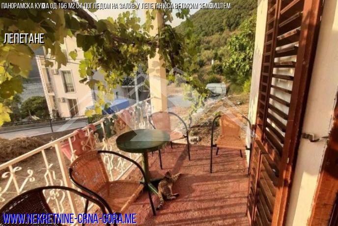 Продаје се кућа у Лепетану (поред Тивата) са панорамским погледом на залив, 156 м2, участок 504 м2.