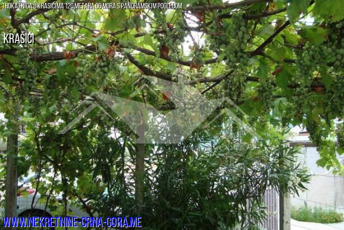 Ispred kuće je terasa od 20m2 i travnjak od 20m2 isprepleten grožđem, veliko stablo mandarine. S bilo kojeg kata - prekrasan panoramski pogled na more i planine, do mora 120m.
