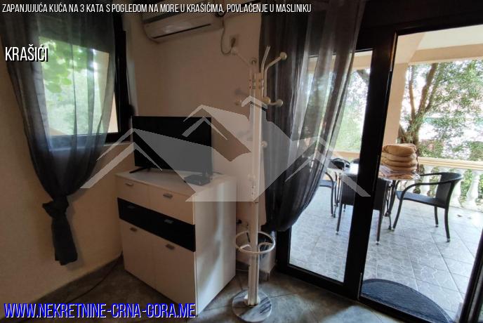 3. kat studio apartman, kupaonica, balkon s prekrasnim pogledom na cijelu uvalu, visoki stropovi.