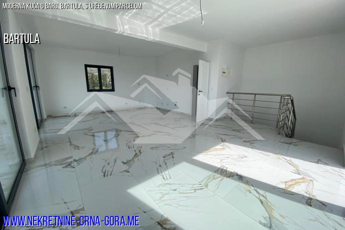 Prodaje se moderna kuća površine 160 m2 u baru, Bartula. Kuća ima 2 kata, tri spavaće sobe, dnevni boravak i 2 kupaonice. Na parceli od 360 m2 nalaze se stabla maslina. Kuća je u završnoj fazi gradnje, što pruža izvrsnu priliku za uređenje interijera po vašem ukusu.