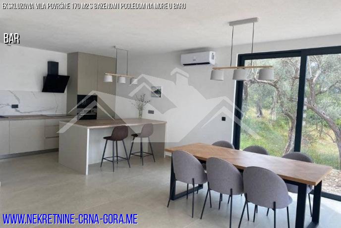 Iz vile se pruža prekrasan pogled na more, Stari Bar i planine. Nalazi se 5 km od mora i 2 km od Starog grada Bar. Nekretnina se prodaje u punoj završnoj obradi, s podnim grijanjem u kuhinji i modernim aparatima.