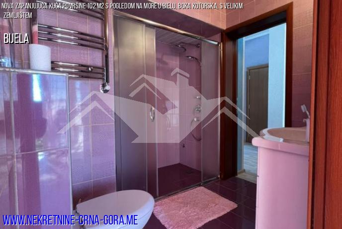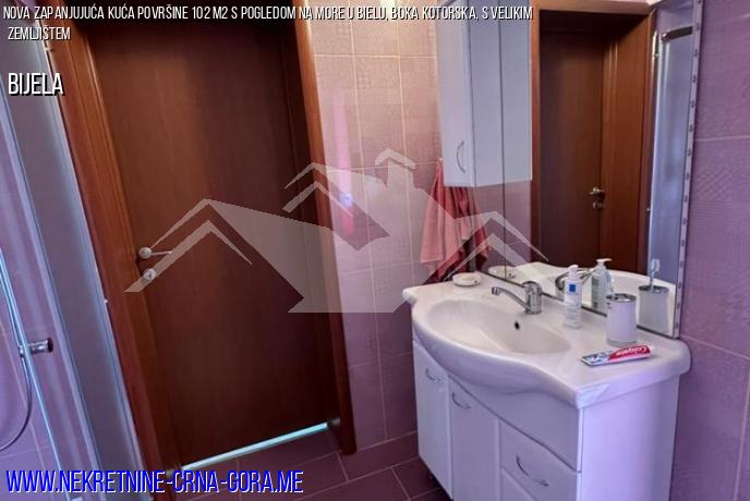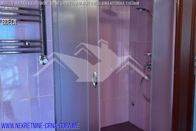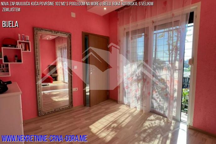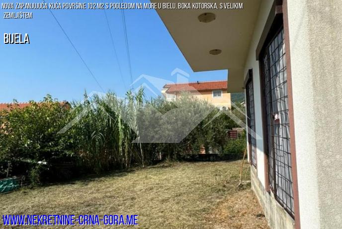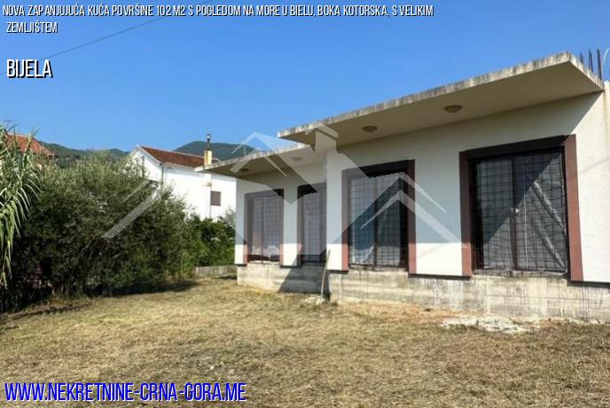 Na obali Bokokotorskog zaljeva prodaje se kuća od 102 m2 u gradu Bieli s pogledom na more, a s druge strane na planinu Lovćen s mauzolejem Njegoša. kuća ima veliku ograđenu parcelu od preko 500 m2.
