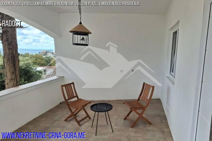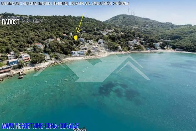 Struktura kuće: kuhinja, dvije spavaće sobe, kupaonica i prostrana terasa s pogledom na more i planine. Kuća se prodaje namještena.
