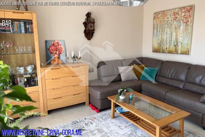 U baru se prodaje udobna kuća smještena na izvrsnoj lokaciji okružena borovima i čempresima. More i sva potrebna infrastruktura nalaze se u neposrednoj blizini. Kuća pruža sve pogodnosti za ugodan život. Dvoetažna kuća ukupne površine 100 m2 nalazi se na parceli od 200 m2.