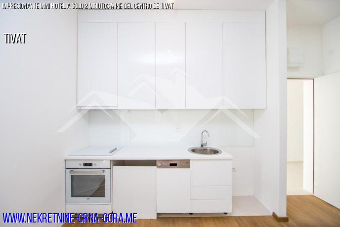 El edificio tiene un hermoso patio ajardinado. Centro – 2 minutos a pie, playa - 5 minutos a pie, Portomontenegro-10 minutos a pie.