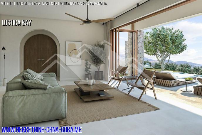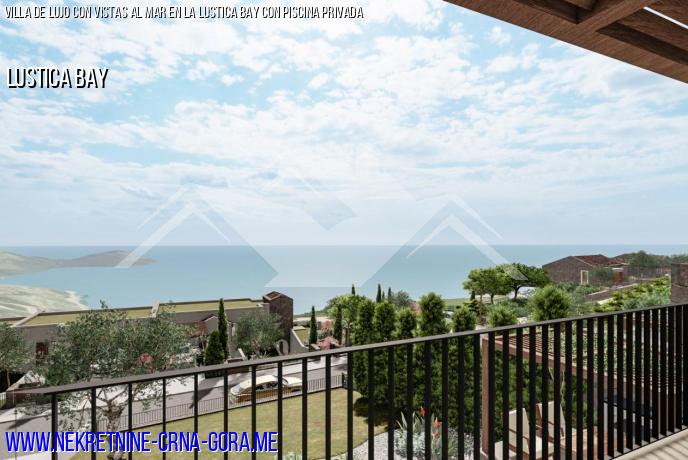 Villa adosada elevada en la Lustica Bay con vistas a los hoyos de golf y al mar Adriático.