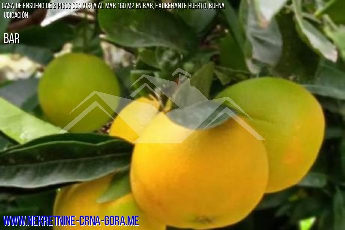 Varios árboles frutales crecen en el patio: naranja, mandarina, uva, caqui y melocotón