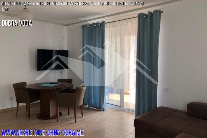 3 piso: pasillo, dormitorio, sala de estar con zona de cocina-comedor, baño, enorme Terraza con vistas panorámicas al mar y el pueblo de Dobra Voda.