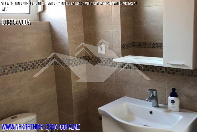 Se vende muy alta calidad de 3 plantas Villa en Dobra Voda, Bar. El área de la casa de 300 metros cuadrados, parcela Verde de 400 metros cuadrados, la Villa fue construida en 2019.
