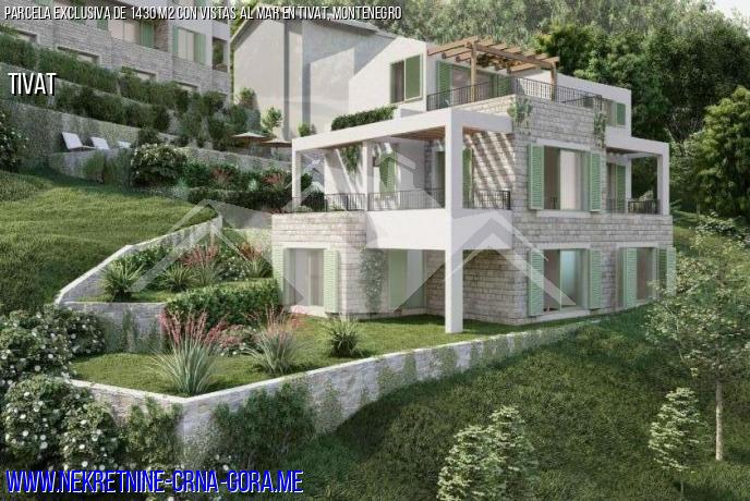 Se vende terreno urbanizado en Tivat de 1430 m2 con un proyecto acordado, el consentimiento del arquitecto jefe de la ciudad y los pagos de servicios públicos pagados. Estado de los documentos: puede comenzar a construir inmediatamente después de la compra.