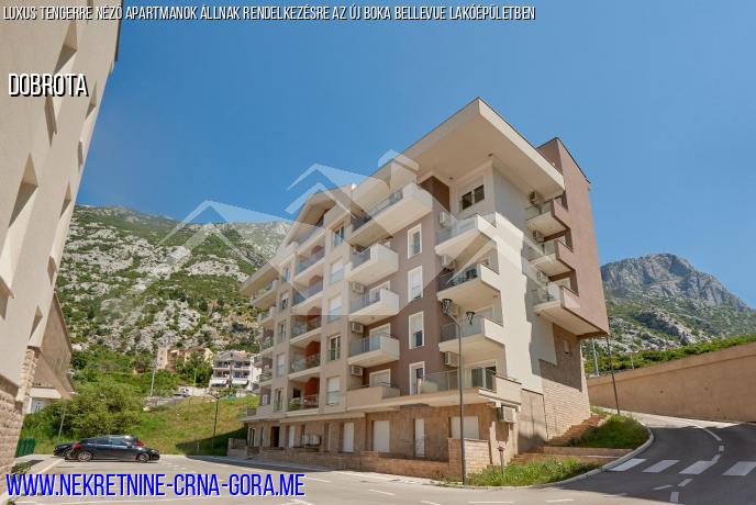 Eladó apartmanok egy új lakóépületben, úszómedencével, gyógyfürdővel és étteremmel a helyszínen, a Kotori-öbölben, Dobrota faluban. Dobrota egy kis falu Montenegróban, a Boko Kotor-öböl partján. Dobrota több kilométerre húzódik a festői part mentén, Kotor ősi városától Lyuta faluig, és joggal tekinthető a Kotori-öböl egyik legszebb településének.