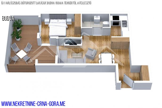 Terület – 46 m2 + 13 m2 terasz - 103.999 ons