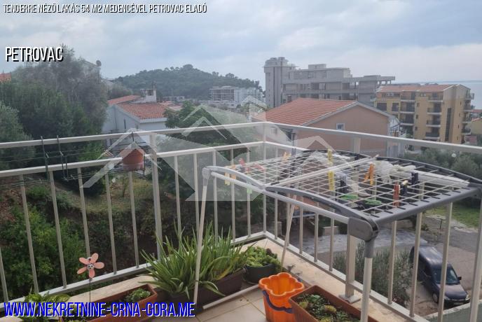 Eladó egy 54 m2-es lakás Petrovac-ban, tengerre néző kilátással egy komplexumban, medencével.