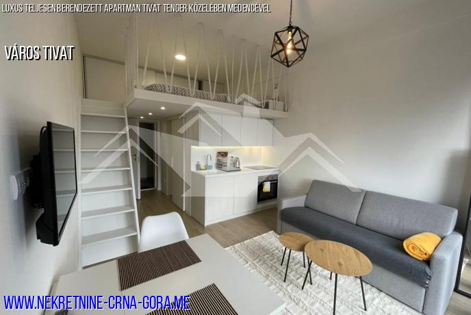 A stúdió apartman 20 m2 + mezzanine 10 m2, amely elválasztja az alvó és nappali, egy új épület a második emeleten egy lift.