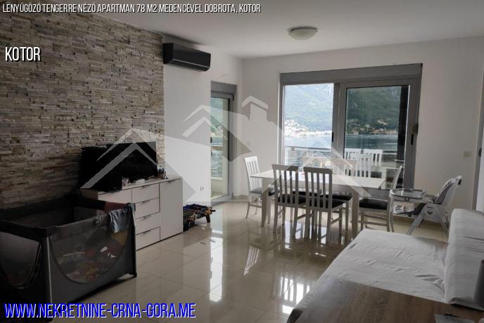 Egy lakás 2 hálószoba, 2 fürdőszoba, 78 m2, panorámás tengerre néző eladó Dobrota (Kotor).