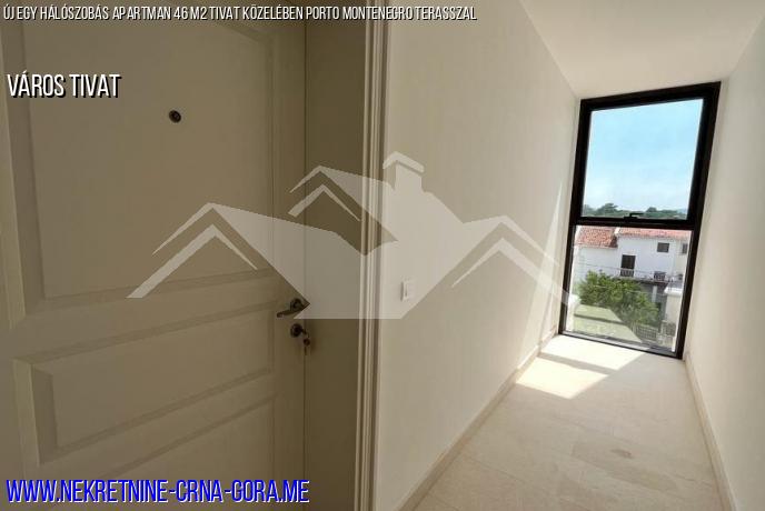Tivat városában, a Podkuk kerületben egy új épületben eladó egy 1 hálószobás + 46 m2-es öltöző.