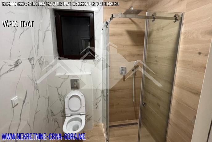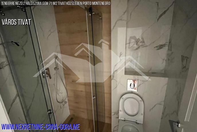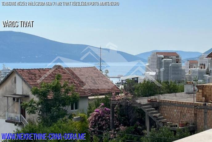 Eladó lakás 2 hálószoba, 1 fürdőszoba 71,6 m2, 2.emelet, Tivat, Podkuk kerületben. Minden ablakból a tengerre nyílik kilátás. A terasz 4,9 m2.
