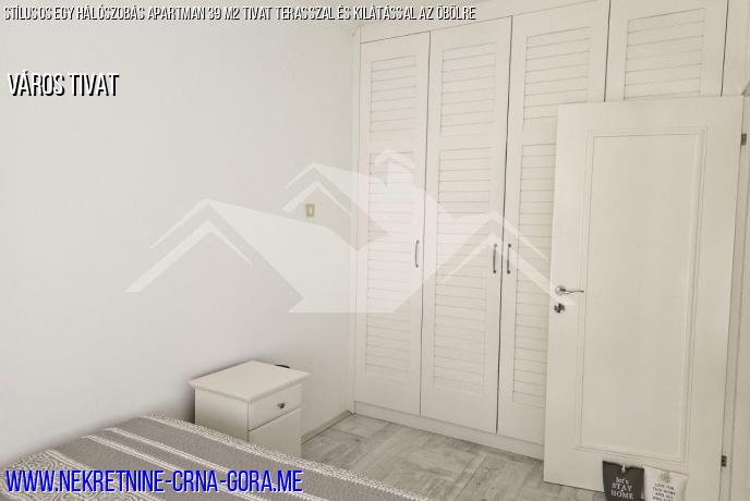 Egy elegáns, egy hálószobás apartman 39 m2 eladó Tivat oolo bevásárlóközpont Magnolia